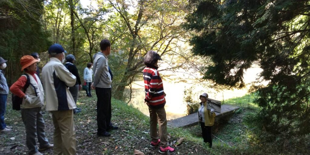 22日は秋晴れの気持ちのいい日、譲治のゆかりの地金川中学校(現在の御津高校)から、姉政野の嫁ぎ先である紙工(しとり)等ゆかりの地を歩き、途中で譲治の作品朗読も交えながらの楽しいウォーキングになりました。