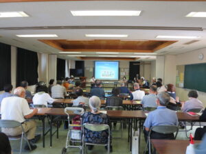 昨年まで朗読会を開催してきた文化活動部会が、今年は地域への浸透を図ることを目当てに、公民館での講座を担当させていただきます。第1回が上記の講座で9月29日に開催致しました。 27人の受講者の自己紹介からスタートし、坪田譲治の生涯を描いたDVDを視聴したあと、譲治のお孫さんの西村真理さんのお話を聞き、そのあと、座談会というプログラムで行いました。西村真理さんは、「祖父と私」と題して児童文学者譲治の人間性あふれるエピソードを紹介してくださり、受講者からも「紙面でしか知らなか譲治をお孫さんののお話を聞いて身近に感じることが出来ました。」等、たくさんの感想が寄せられました。
