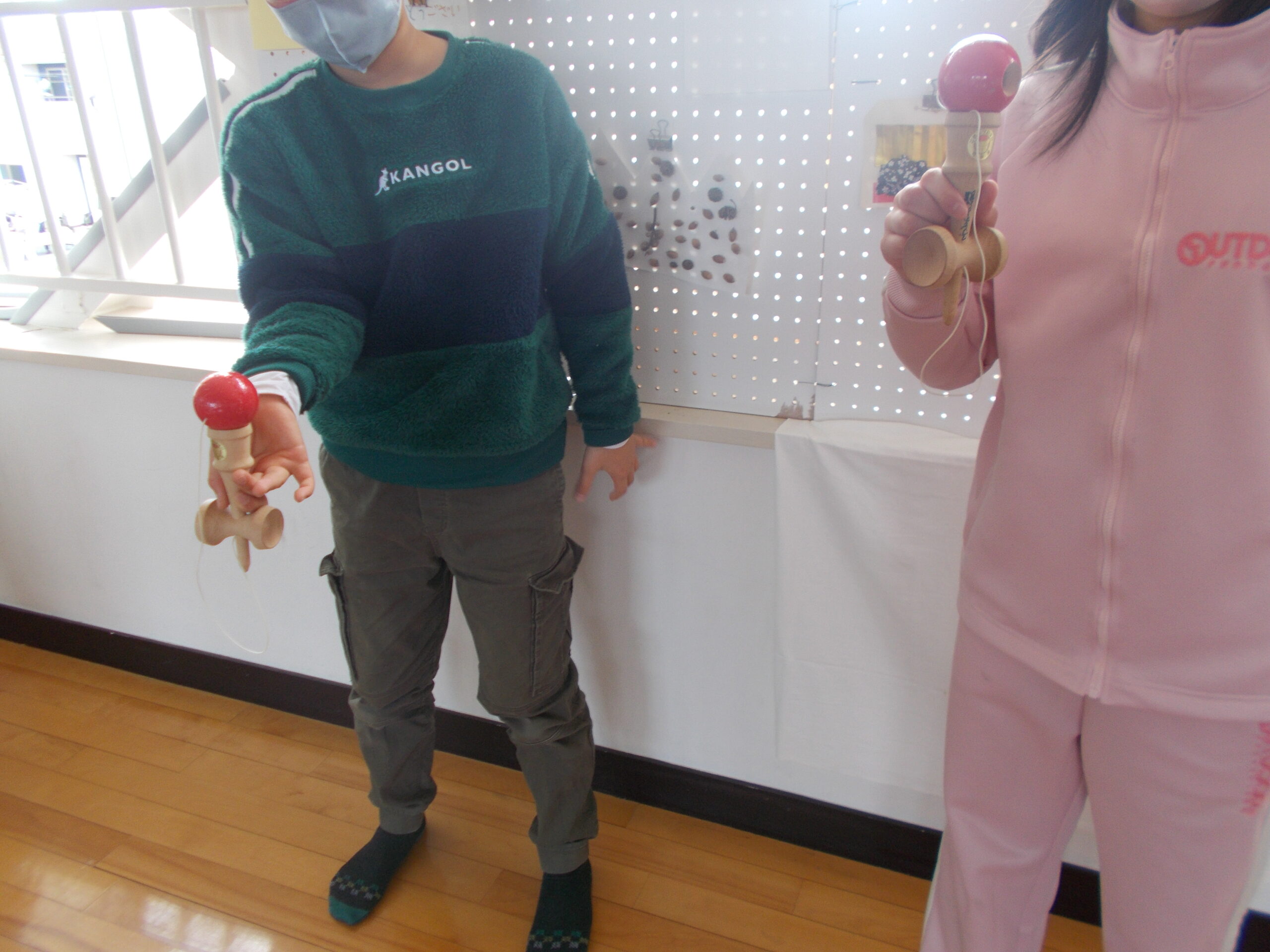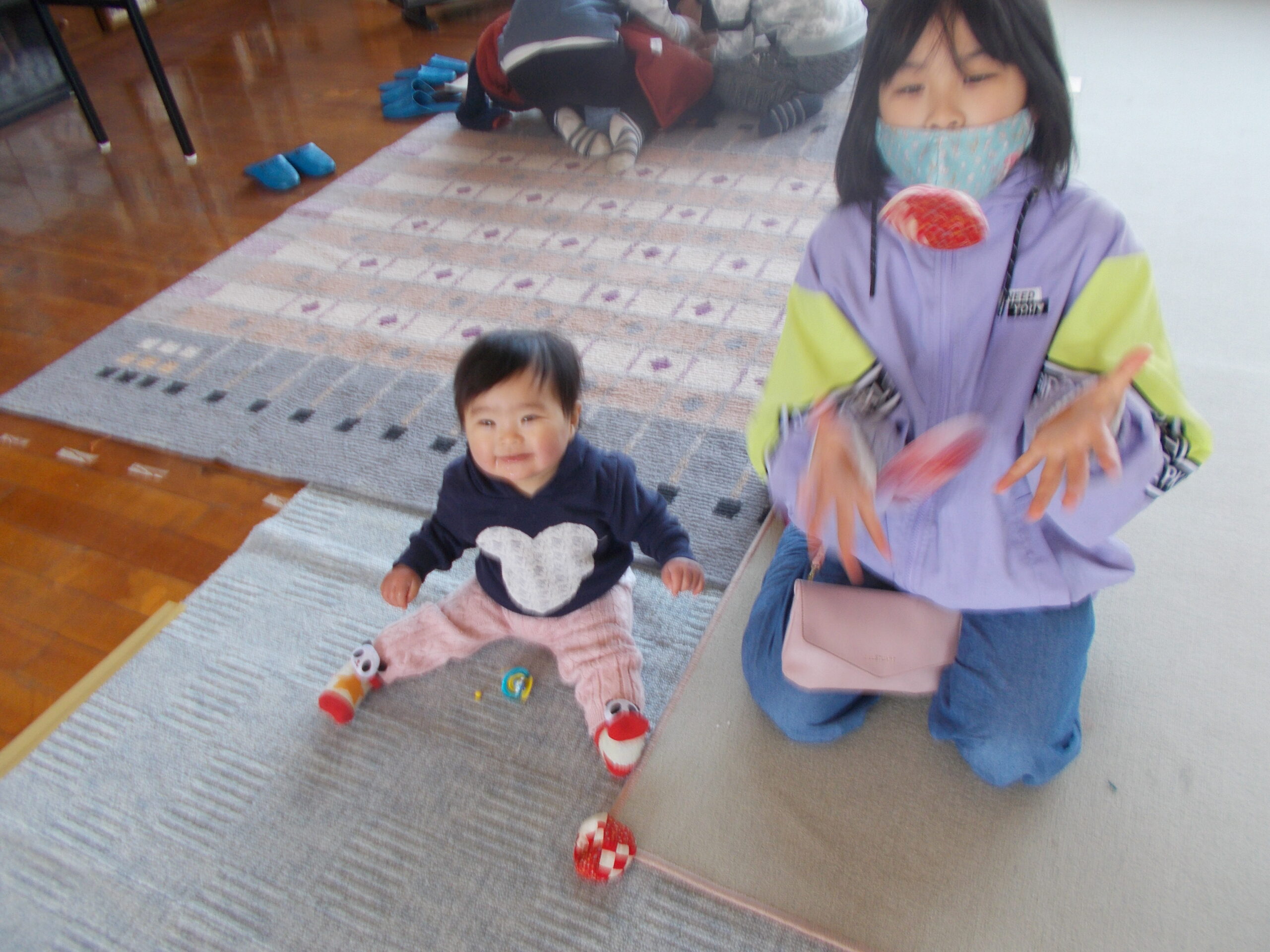 今年初めての子どもの館は、とてもにぎやかでした。赤ちゃんから幼児、児童、保護者、スタッフ、みんなでお正月遊びを楽しみました。園庭では、はねつきをしました。根気よく練習して6回もラリーが続きました。遊ぶ部屋では、お手玉、あやとり、坊主めくり、百人一首をしました。自分でできるまであやとりを教えてもらっていた子ども、百人一首を競技試合のように真剣にやっていた子どもたち、すごいなと思いました。廊下では、コマ回しやけん玉に挑戦しました。保護者の方々もとても楽しそうに取り組んでおられました。笑い声が絶えませんでした。みなさん、今年も子どもの館でいろいろな活動を楽しみましょう。